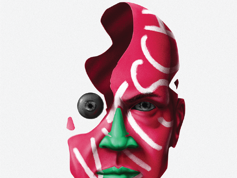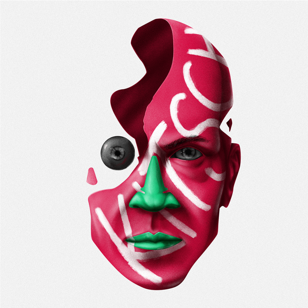Due to his work's simplicity, I personally don't like it very much as my personal style is much more sophisticated and detailed, therefore I had a lot of trouble trying to make my own drawings in this similar manner. His sculptures are extremely straightforward and uncomplicated initially, making it difficult to design a unique piece, which is another reason I found it difficult to draw much significance from his work. This piece was the most difficult one I redesigned. the detail in which the face looks like an abstract colour is fascinating, where the lips and nose are green but still look very realistic, I really struggled doing this in my redesign on my own face. I used similar colours but changed some and did made the same white marks going across the face using the chalk brush stroke effect.