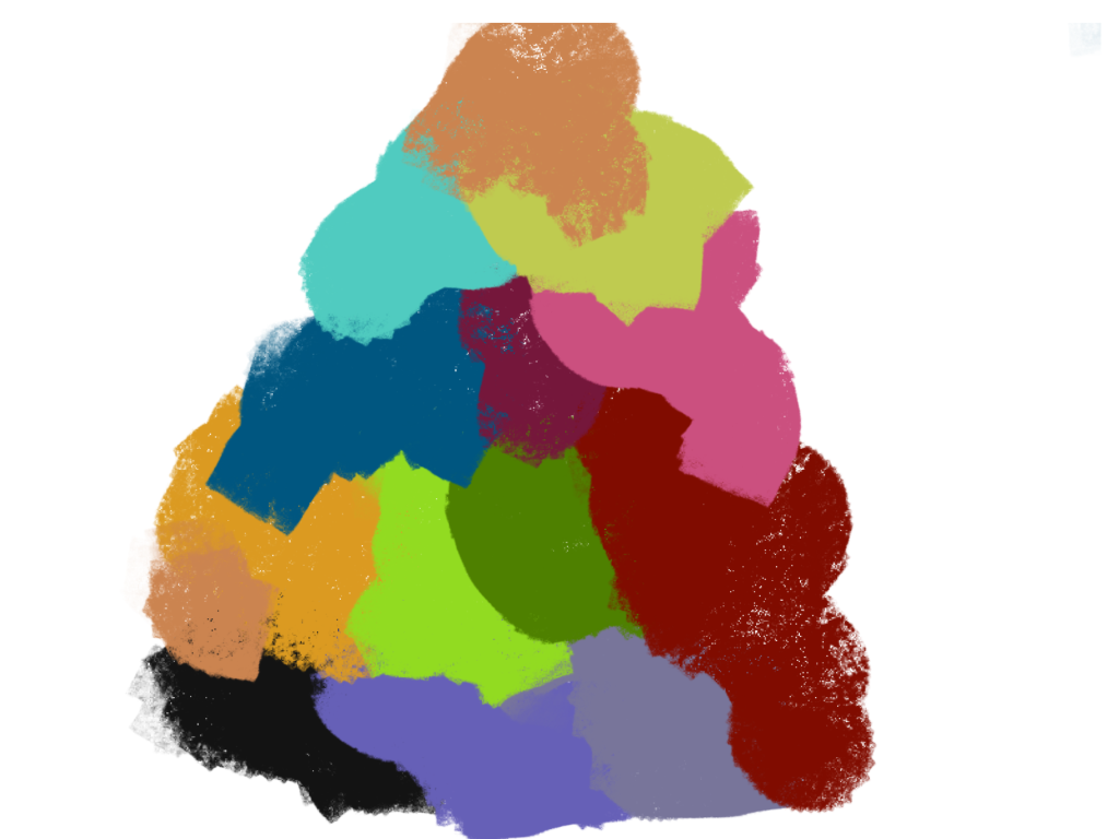 This piece was fairly simple to redesign as I decided to use a digital form rather than clay as he has used. Once again I used procreate to use the different brushes to create an over lapping effect of each layer of colours.