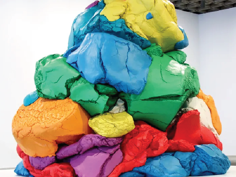 American painter, illustrator, and sculptor Jeff Koons finds inspiration for his works in children's toys, cartoon characters, porcelain figurines, and celebration decor. He often creates sculptures of very easily accessible, ordinary objects on a larger scale with what seems to be very little thinking or significance behind them. A lot of these pieces give off a tacky vibe which seems to be his intention. This makes his art appear cheap due to the simple forms and plastic-looking materials he incorporates into his work, despite the fact that they are quite expensive to produce, which goes against the general public's conception of what art should be. He also plays with the concept that something enormous might appear to be light. But by doing this, he makes us as an audience think about how we regard the things we own and the idea of consumerism as a whole. Salvador Dali and Andy Warhol were the two artists who most influenced Koon's style, which consists of a variety of elements like kitsch, pop art, and ready-made items. The majority of Jeff Koons' works displayed here are from series, which was his usual method of working. His extensive collection of inflatable pool toys and balloon animals was extremely appreciated and financially successful, bringing in some of the highest auction values of all his creations.