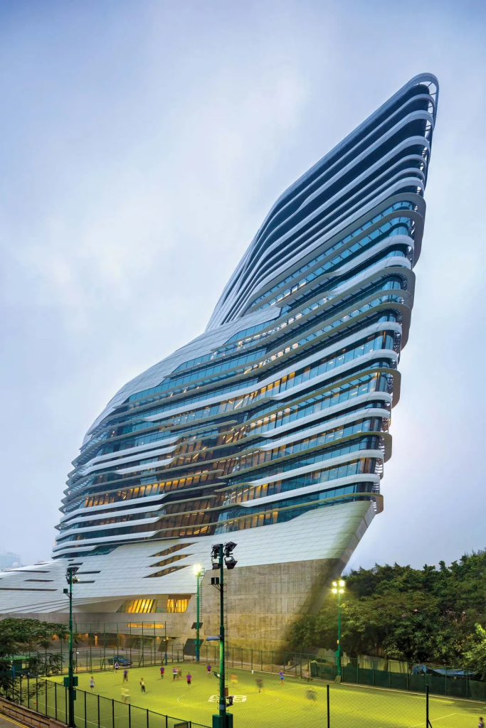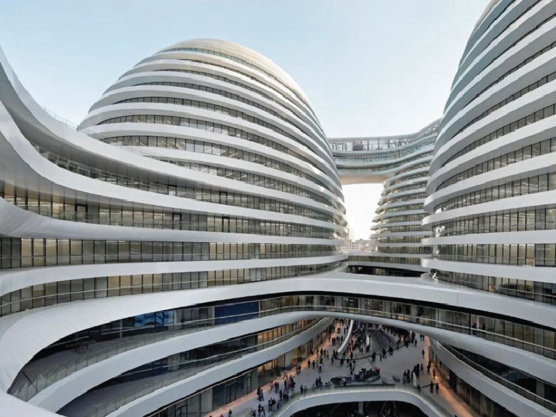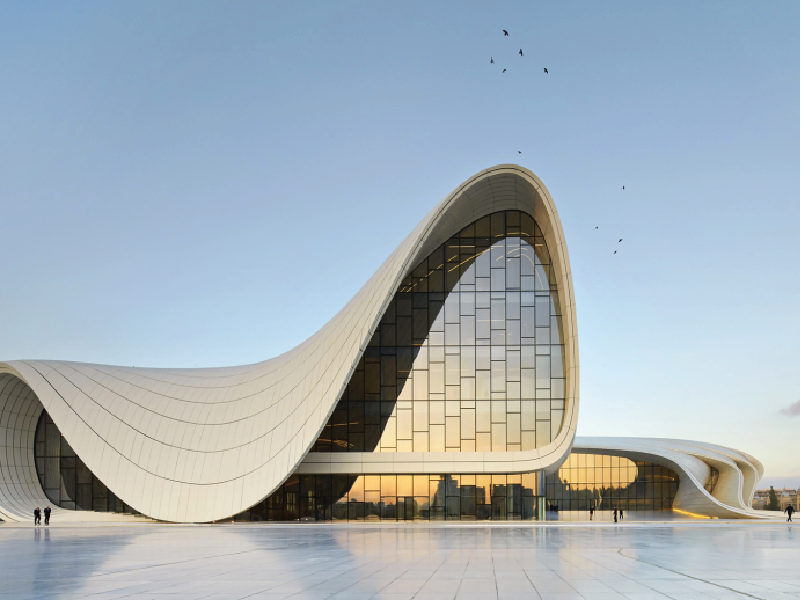 Zaha Hadid was an Iraqi British architect who used abstracted paintings to visualize her concepts and buildings and bring them to life. She is most known for her radical and deconstructivism designs. She gained recognition once winning her entry for 'the peak', at this time people were more focused in on post modernism therefore Hadid's designs stuck out and made her unique as opposed to other architects at the time. Smooth curves are a recurring motif in Zaha's designs; they create an opulent and affluent sense, giving her structures a certain fluidity and sleekness. In recognition of her preference for using curves rather than crisp, angular forms, Hadid has earned the moniker "Queen of the Curve." Architectural conventions were frequently questioned by Hadid. She gave preference to aesthetics above practicality and used minimalist design principles to produce ornate, elaborate constructions.