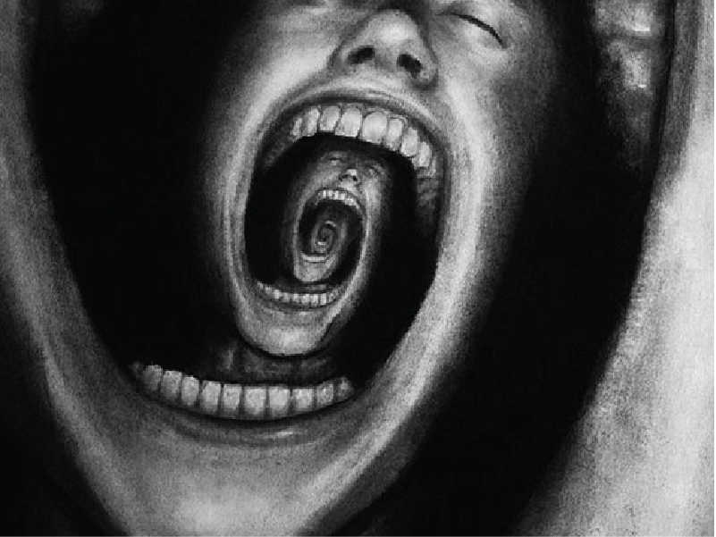 My redesign here of Seb Maestro's work is a photography piece, it revolved around depression and feeling stuck, as though it is permanent and will not leave, therefore I placed sticky tape around my brothers head and face to distort his face, as Maestro distorts his images and drawings. The photograph I took captures the feeling of being 'stuck' perfectly, and i related it to the original by wrapping it around a fair few times, to encapsulate the spiral, as though the feelings are making them spiral out of control.