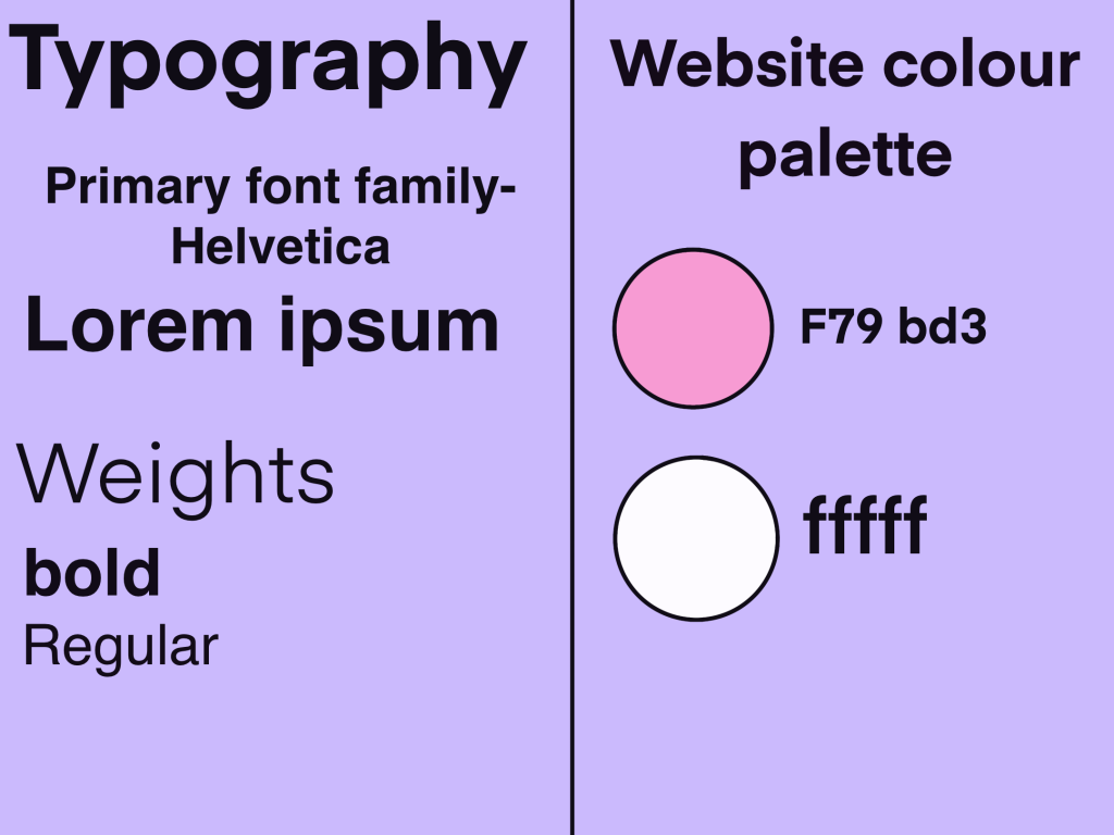 i chose very simple fonts for my website and made sure I kept it all cohesive throughout the entire webpage. Helvetica is a classic font that is not too busy but also not to plain and boring, it is easily readable which is the main reason why i chose it. my colour palette was also extremely simple as i didn't want too much going on and for the colours to take away from the artwork itself, this way the reader has a chance not to get carried away by jazzy graphic and can genuinely take the time to learn from my website.