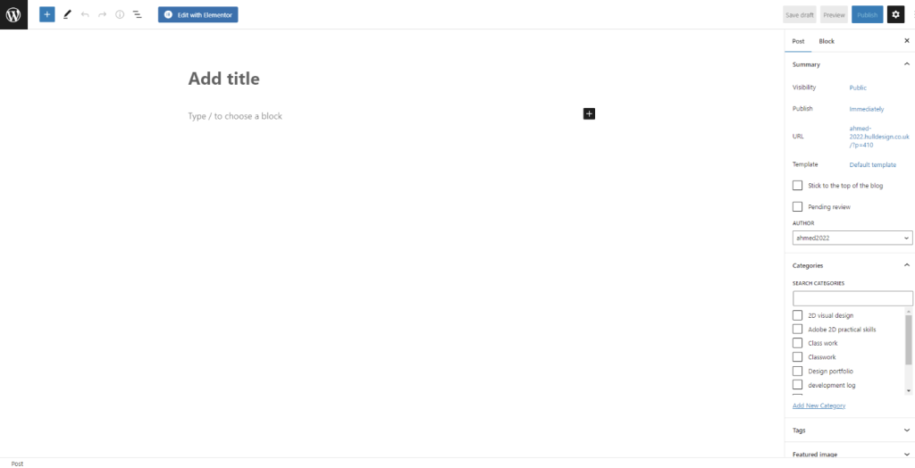 Next you must add a new post, then click 'edit with elementor'. This will take you to elementor allowing you to begin using elementor to design your page.